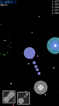 点击分裂按钮,可使星球沿当前移动方向一分为二。