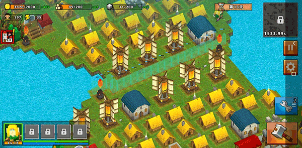 前三波收入全部用于建造民房以稳定金币来源,第五波起开始建设伐木场。
