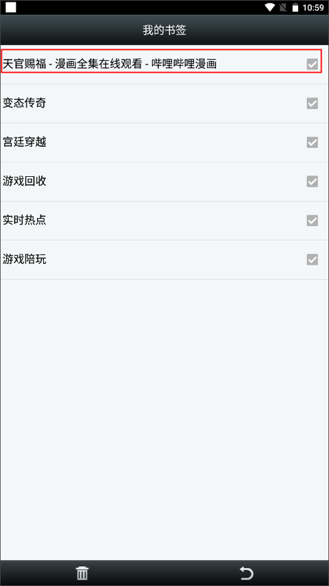 勾选需要删除的书签,点击底部垃圾桶图标完成移除。