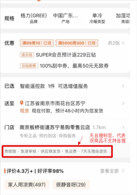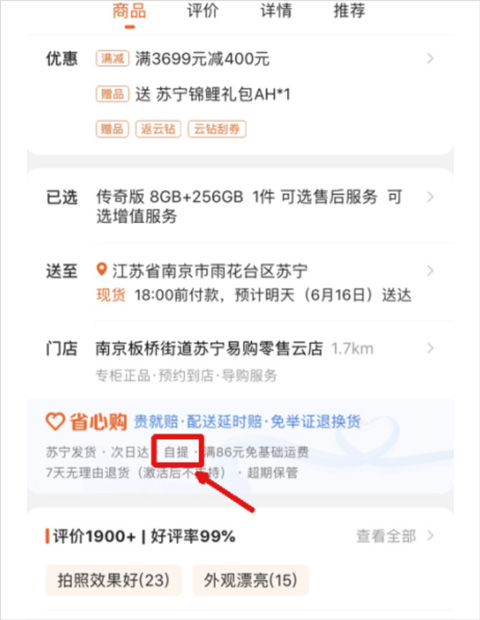 备注:苏宁国际商品、供应商或商家发货商品不支持自提