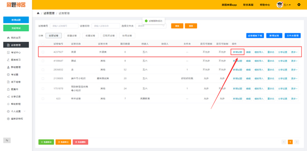点击“新增试题”进入编辑界面,当前支持单选、多选、判断、填空、简答、组合题及完形填空等多种题型。