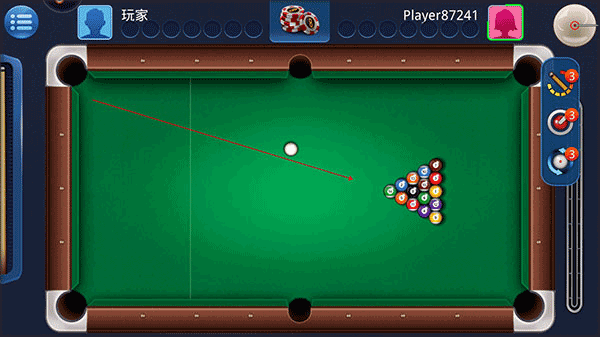 游戏严格遵循真实桌球物理规则,结合角度、力度与旋转参数,以进球数量决定胜负。