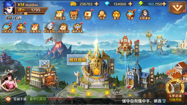 突破传统卡牌平面表现,采用动态光影、场景特效与华丽技能动画,搭配超大比例BOSS,生动呈现斗罗大陆的奇幻风貌。