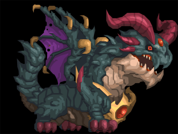 技能:极限跳跃——跃起后猛砸地面,造成范围伤害与晕眩(对英雄无效);毒雾笼罩——喷吐毒雾降低全场龙宠攻击力(对英雄无效);邪恶军团——召唤五名小怪协同作战。