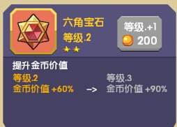 六角宝石提升金币兑换价值,最高180%,在交易与强化中性价比优于金耀石。