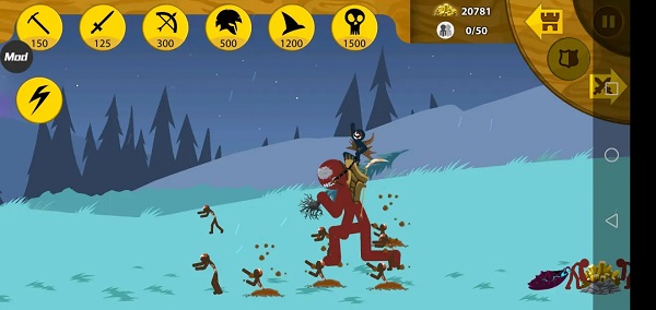火柴人战争遗产融合策略与即时操作,采用经典火柴人形象,核心玩法围绕建造士兵、派遣矿工采集金币展开。没有稳定经济来源,就无法持续生产作战单位。