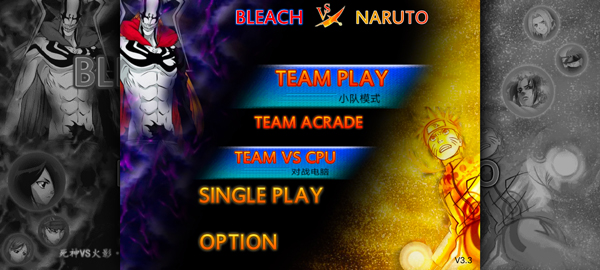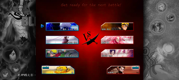 从众多死神与火影角色中挑选三名作为己方阵容,同时为电脑对手指定三名角色。