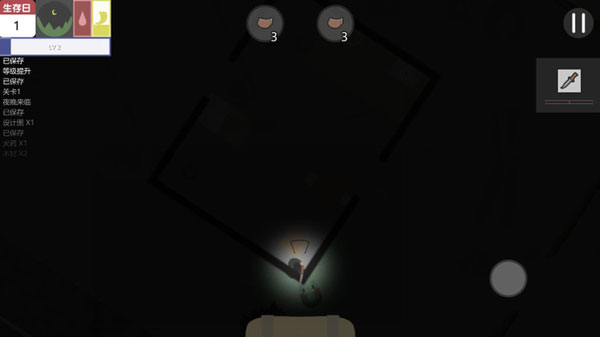 游戏界面布局清晰,包含关键生存信息:当前生存天数、大致时间、生命值、饥饿度以及角色等级。