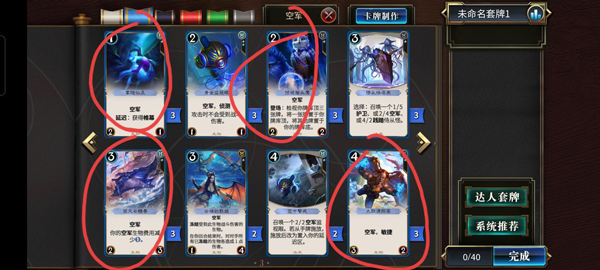 此处推荐法术猎构筑:蓝色低费空军尽量带满,【领风】为核心卡牌,保障快速铺场;蓝色法术侧重过牌,数量需适度以免卡手;红色方面【炎龙吐息】必满,其余解场牌按需搭配。