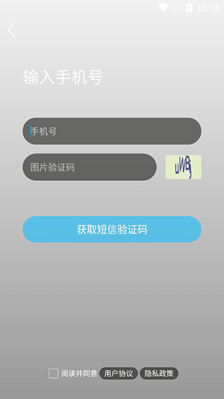 输入手机号码及图片验证码后,获取短信验证码完成注册流程;