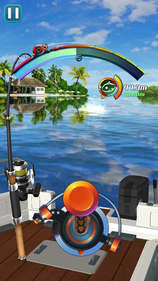 持续拖动可加快收线速度,当鱼的体力或距离归零时,即视为成功捕获。