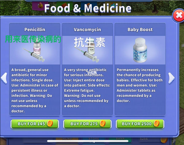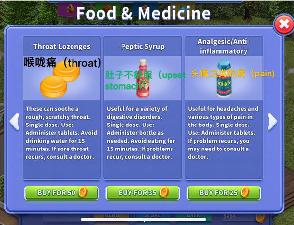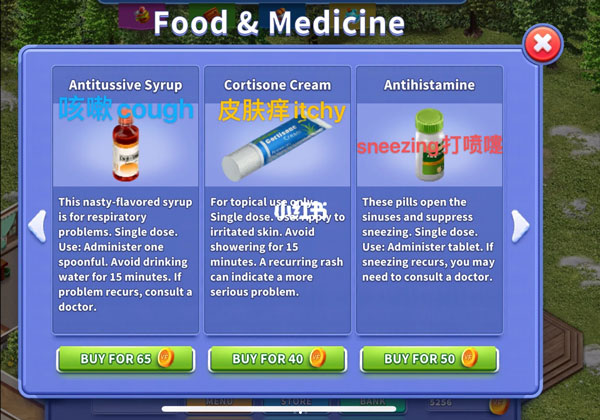 首先确保冰箱中有充足食物。若显示“有点不舒服”,可多次抱起放下角色以查看具体症状,据此购买对应药品。