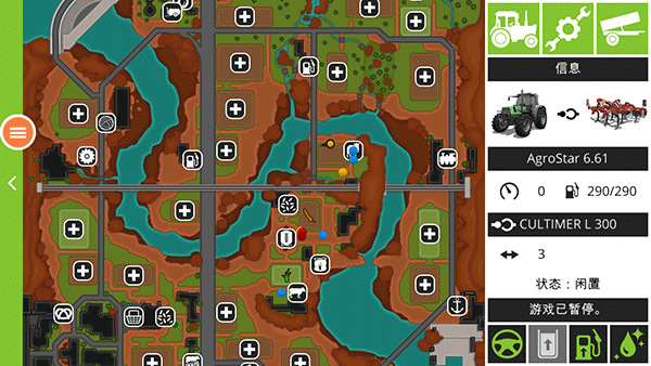 通过世界地图可快速定位附近的农场、商店、加油站等关键地点。