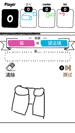 根据屏幕上出现的关键词,比如“猫”或“望远镜”,在限定时间内快速绘制出对应内容。