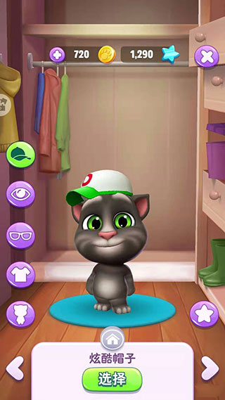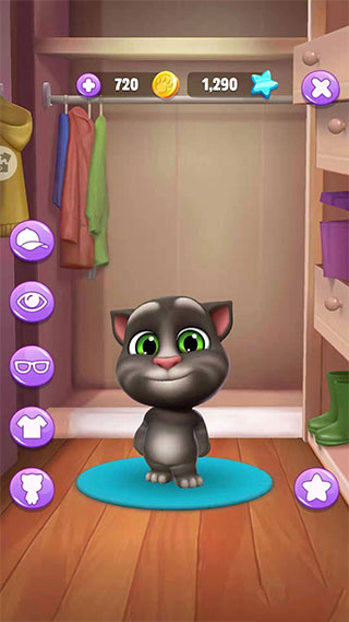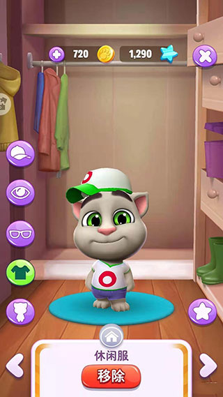 这是一款围绕小猫日常生活展开的养成游戏,许多玩家热衷于为汤姆猫更换各种风格的装扮。想要为它换装其实非常简单,只需进入卧室点击左侧的衣柜即可打开衣帽间界面。