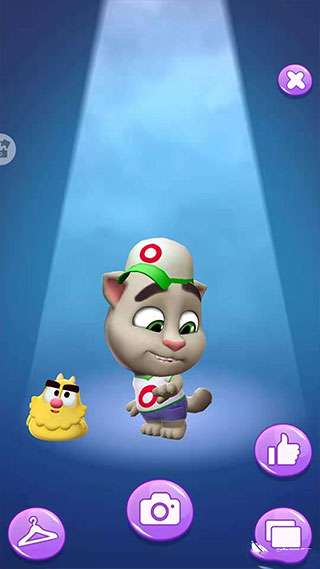 换装完成后,点击右下角星星按钮,汤姆会进入拍照界面,摆出姿势后点击下方相机图标即可保存照片。