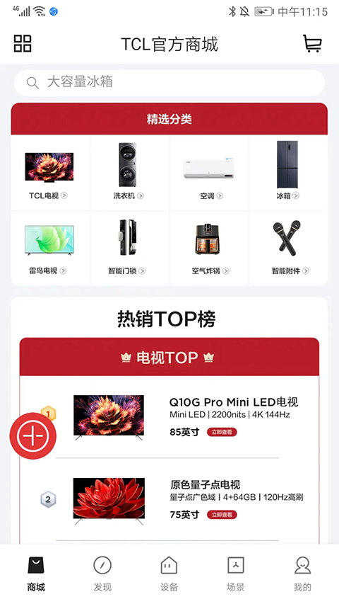 商城中汇集TCL旗下电视、洗衣机、空调、冰箱等全系家电产品,方便一站式浏览与选购。