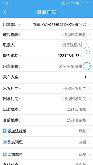 如需用车,可在线提交申请,按提示填写相关信息即可