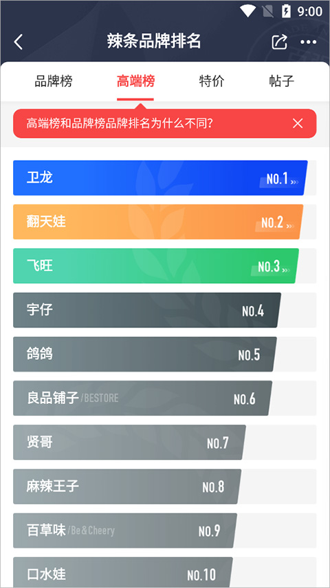 系统随即展示辣条品牌的详细排名榜单。