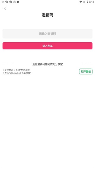 复制页面提供的邀请码,点击“加入优品-成为分享家”完成入驻流程。