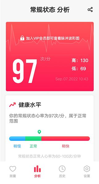 【无限测量和数据存储】支持每日多次无限制检测,所有结果永久存档,并以精美图表形式可视化呈现心率变化轨迹;