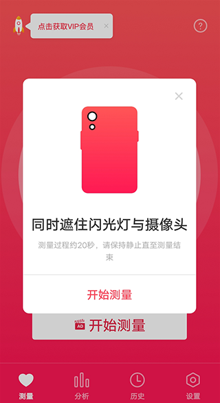 打开心跳测试应用,点击【开始测量】按钮启动检测流程;将手指平稳覆盖于手机背面的摄像头与闪光灯区域,保持约20秒静止以完成测量;测量过程中界面会实时反馈进度;检测结束后,系统自动生成包含当前心率数值及趋势分析的健康报告。