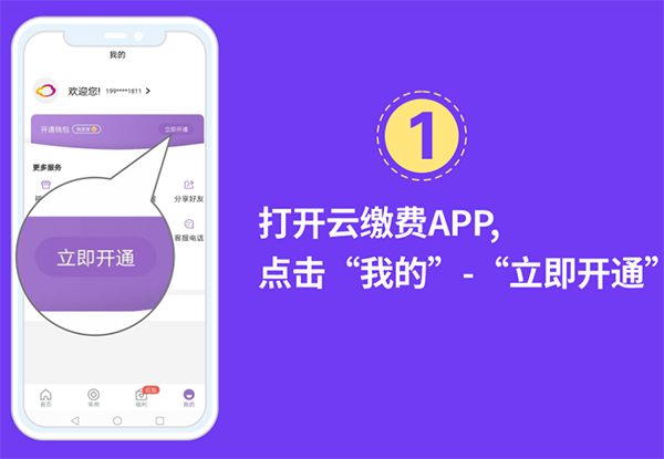 打开云缴费APP,进入“我的”页面,点击“立即开通”。
