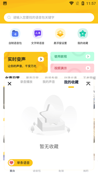 语音包类型丰富,适配社交、娱乐、游戏等多种使用场景;
