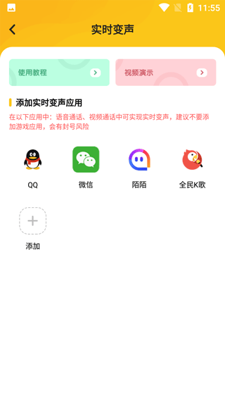 在变声器主界面添加或选择需要启用实时变声的目标应用;