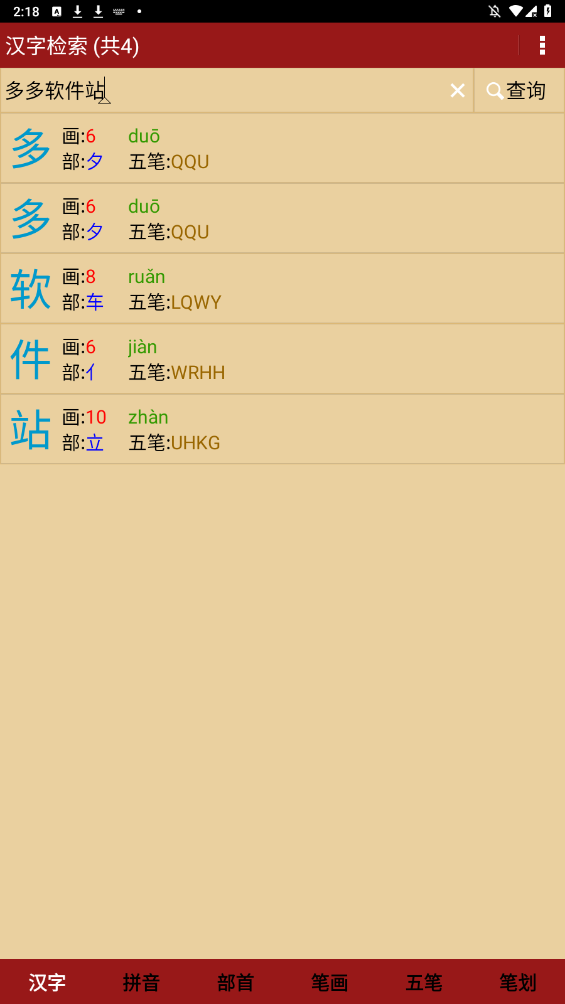 支持通过汉字、拼音、部首、笔画数等多种方式进行灵活检索。