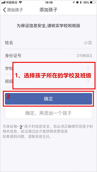 选择孩子所属的学校与班级,完成后点击【确定】。
