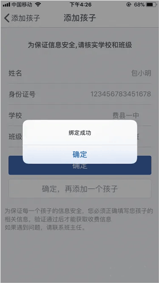 孩子信息绑定成功。