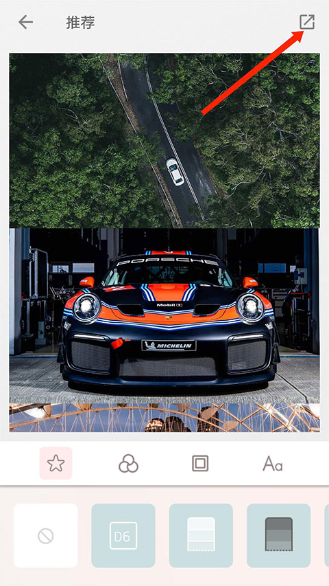 在最终页面点击底部“星号”按钮,选择带颜色的边框即可更换背景。