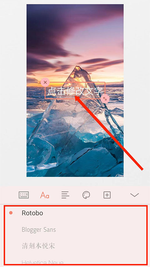 系统随即弹出文本输入框与字体样式选项,点击文本框即可添加自定义文字。